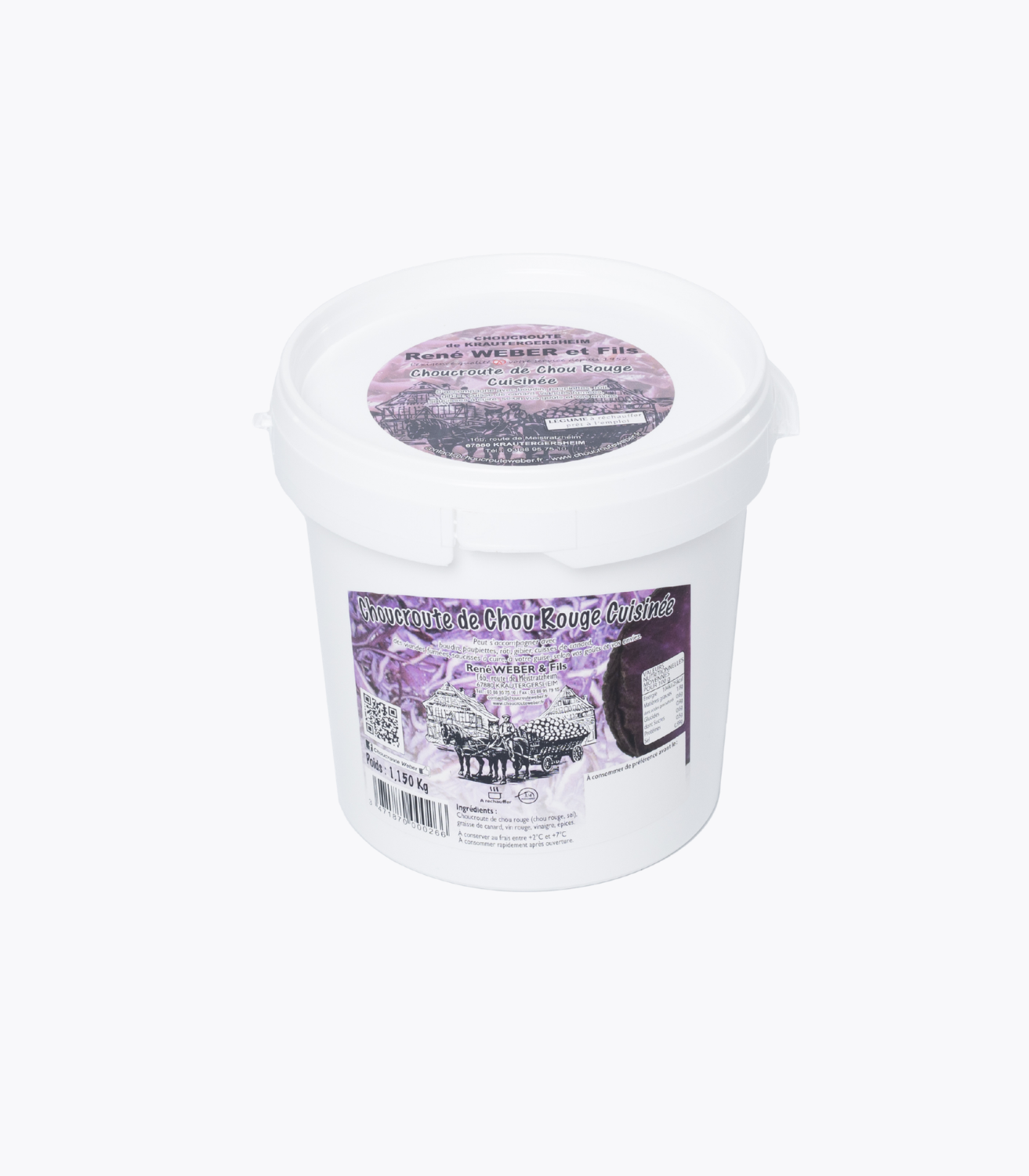 Cette choucroute de chou rouge est cuisinée avec de la graisse de canard, du vin rouge, du vinaigre et des épices, ce qui lui donne un profil aromatique unique.