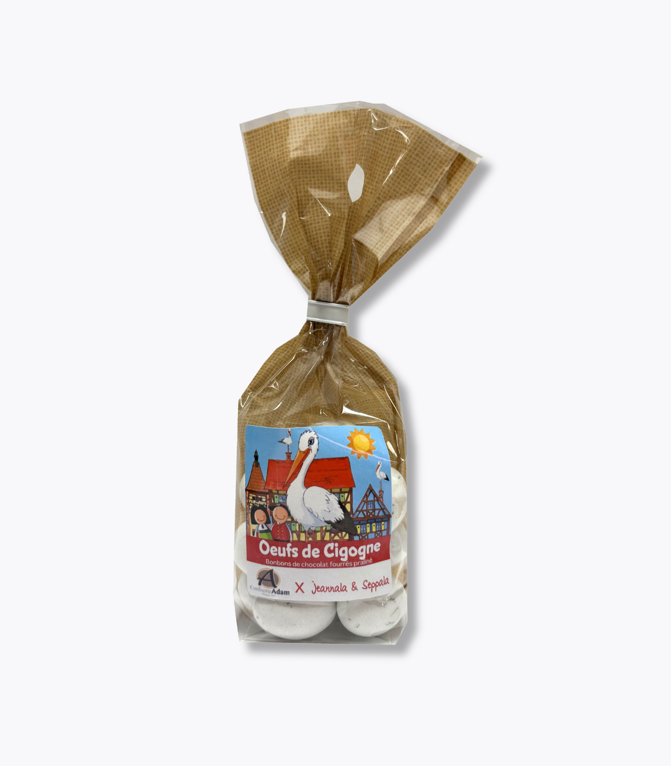 Depuis plus d’un siècle, la Confiserie Adam perpétue l’art de la confiserie et des douceurs chocolatées. Associée à l’univers joyeux de Jeannala & Seppala, cette création devient une gourmandise qui célèbre l’Alsace à travers ses symboles et son goût pour les plaisirs sucrés.